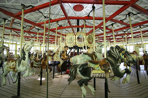 George F. Johnson donated six carousels to the Triple Cities between 1919 and 1934. There are fewer than 170 antique carousels remaining in the United States and Canada. All were built by the well-known carousel maker Allan Herschell and contain wood-carved figures. Each summer they are open to the public to ride for free. The largest and most ornate of these carousels is located in CFJ Park.